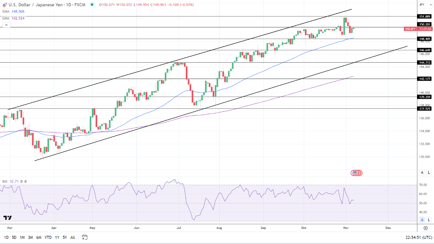FXEmpire分析师Bob Mason表示,日线图上看,美元/日元仍高于50日和200日均线,发出看涨价格信号。美元/日元突破150.201阻力位将使多头上涨至151。