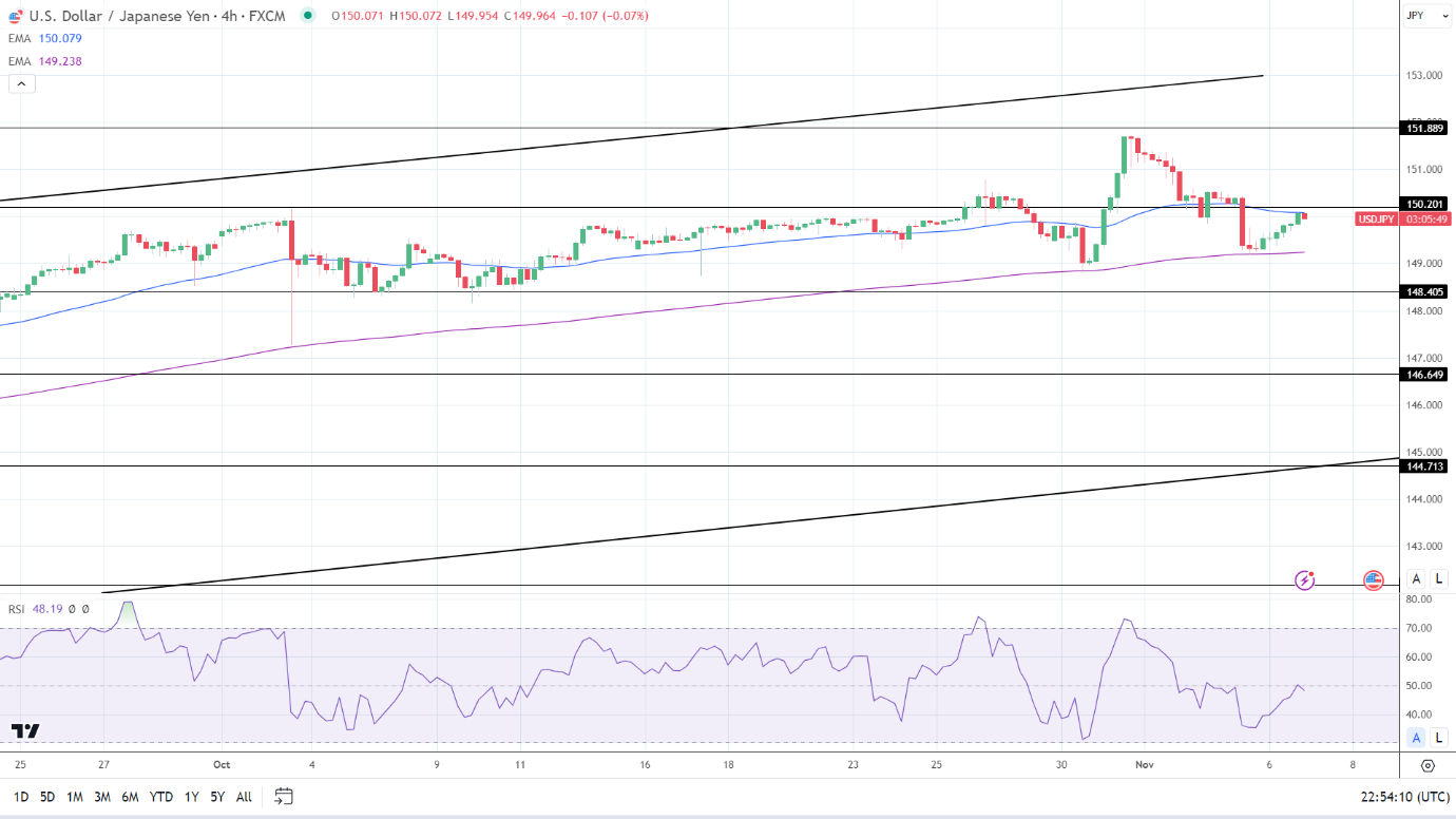 美联储评论将成为周二的焦点,跌破149.500将使50日均线和148.405支撑位发挥作用。买家需求可能会增强至148.500。50日均线与148.405支撑位汇合。