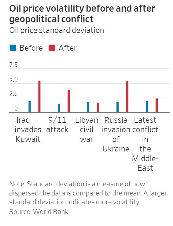 中东并不是一个孤立的例子。去年俄乌冲突给石油和天然气市场造成了严重破坏,目前仍在危及粮食供应。美联储上月在一份报告中警告称,“这些冲突的升级或其他地缘政治紧张局势的恶化,可能会减少全球经济活动,并推高通胀。”