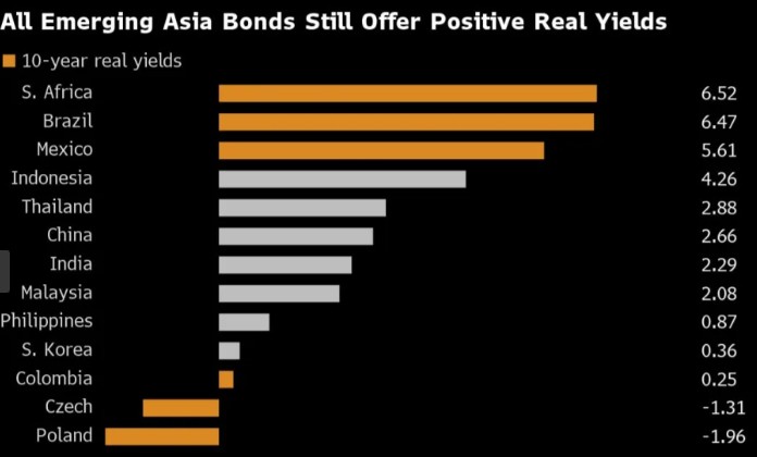 随着美元走弱,策略师们表示,对于那些愿意押注亚洲新兴市场央行维持高利率、美元走弱的投资者来说,亚洲新兴市场货币具有吸引力。例如,富国银行新兴市场策略师Brendan McKenna认为,印尼卢比、菲律宾比索和泰铢是最好的选择。其他专家则指出,亚洲各大央行有足够的火力来捍卫本国货币。该地区所有货币当局目前的外汇储备足以支付三个多月的进口。