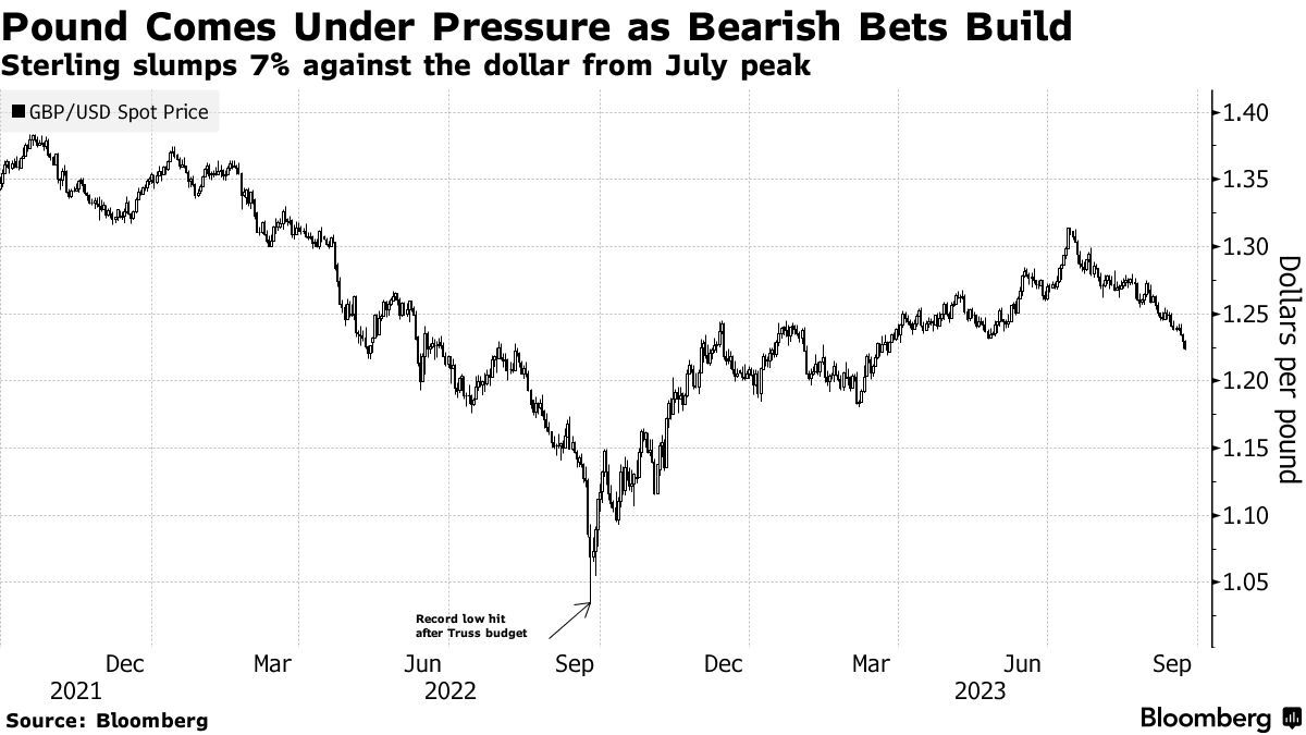 一年前,英国政府出台的大规模无资金减税计划导致英镑一度跌至创纪录低点。在前首相特拉斯下台、英国政府撤销该减税计划之后,英镑从低点回升。然而,市场如今再次转向看跌英镑,原因是英国糟糕的经济基本面。