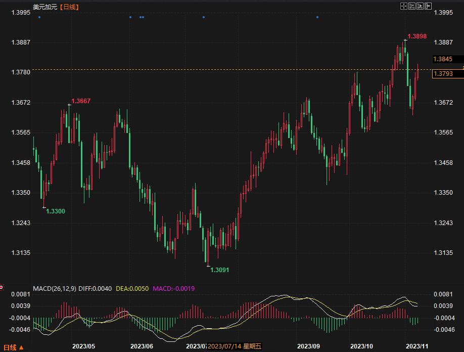 周三(11月8日)世界股市震荡,投资者寻求了解美联储的利率立场,许多华尔街人士认为利率已经见顶,美联储的立场仍扑朔迷离。尽管分析师预计美国经济将在第四季度放缓并可能陷入衰退,但由于人们对美联储已经结束加息周期的信心不断增强,美元正在从上周的大幅抛售中反弹。鲍威尔讲话前,美元连续第三天上涨。加元难掩跌势,加元/人民币下探5.27位置。美元指数连续第三天上涨,现报105.52涨幅0.01%。