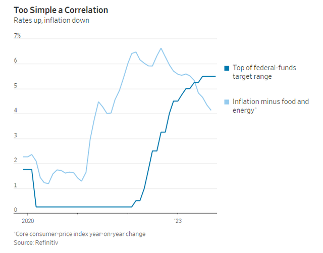 相反,通胀下降的主要原因是美联储无法控制的事情,因为疫情过后经济恢复了正常。对美联储最好的评价是,它阻止了事情变得更糟。
