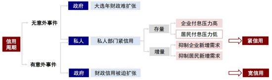 图表1:美国是否再度宽信用的关键在于紧缩力度对新增需求和存量付息的“侵蚀”,以及意外事件是否发生
