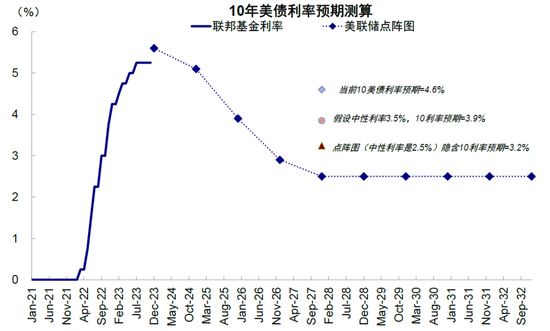图表17:我们测算10年利率预期约3.9%,叠加0%的期限溢价,美债利率中枢或在4%