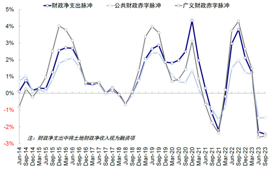 信用周期受融资成本和投资回报率二者的相对强弱而变化,当融资成本超过新增投资回报率、并加大存量付息压力时,信用扩张也就会受到压制,反之亦然。当然,政府部门信用扩张不完全受经济因素主导。1)美国信用周期收缩较慢是因为广义投资回报率一直高于融资成本,同时高利率对已锁定的存量付息压力传导有限,导致增长和通胀回落缓慢。不仅如此,政府部门信用今年二季度因债务上限解决和银行风险暴露“被迫”扩张,还抵消了私人部门的收缩,成为三季度经济再加速的“源头”。2)反观中国,地产收缩导致的资产负债表受损和更低的投资回报率预期都抑制了在低融资成本下加杠杆的可能,有能力逆周期扩张信用的中央财政今年以来却持续偏紧,财政脉冲是2021年以来最紧。所以展望未来时,关键是判断美国还会不会因为什么意外事件再宽信用,而中国靠什么才能宽信用。