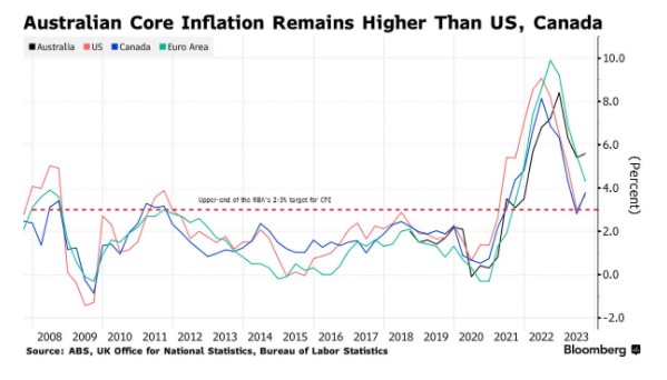 与全球其他国家相比,澳大利亚迄今的紧缩步伐较慢,截至目前累计加息幅度为425个基点,相比之下,新西兰和美国的加息幅度达到了525个基点。